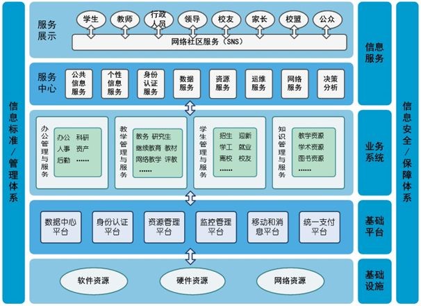 智慧校園的三個(gè)核心的特征:一是為廣大師生提供一個(gè)全面的智能感知環(huán)境和綜合信息服務(wù)平臺(tái),提供基于角色的個(gè)性化定制服務(wù);二是將基于計(jì)算機(jī)網(wǎng)絡(luò)的信息服務(wù)融入學(xué)校的各個(gè)應(yīng)用與服務(wù)領(lǐng)域,實(shí)現(xiàn)互聯(lián)和協(xié)作;三是通過(guò)智能感知環(huán)境和綜合信息服務(wù)平臺(tái),為學(xué)校與外部世界提供一個(gè)相互交流和相互感知的接口。