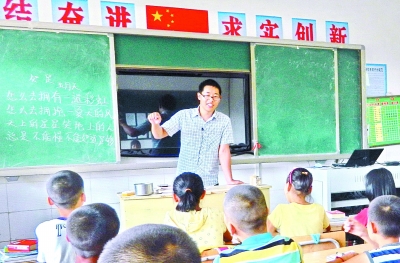 9月3日,湖北省鄖縣白桑關(guān)鎮(zhèn)東良完全小學(xué)教師趙琳在給學(xué)生上課。2012年畢業(yè)于南開大學(xué)的趙琳,今年通過(guò)了北京大學(xué)研究生復(fù)試,但他卻主動(dòng)放棄了讀研,回到家鄉(xiāng)鄖縣當(dāng)資教生,實(shí)現(xiàn)自己多年的教育夢(mèng)想——當(dāng)一名大山深處的鄉(xiāng)村教師。王小虎 攝