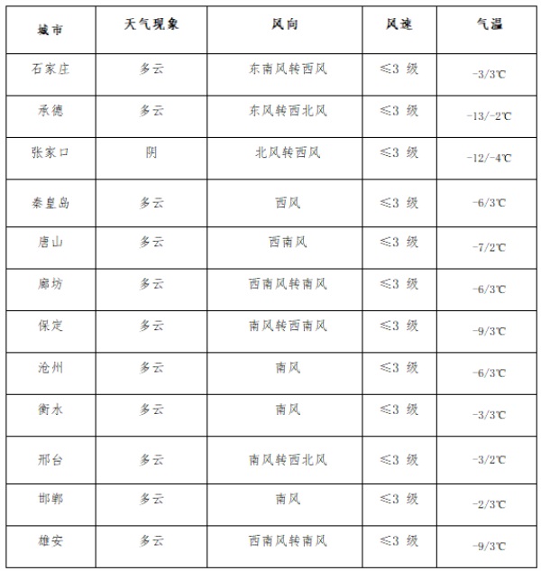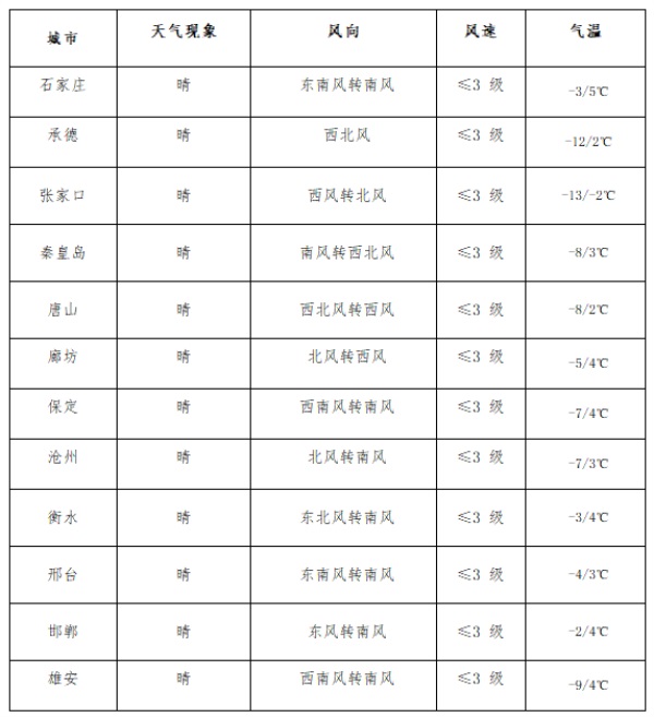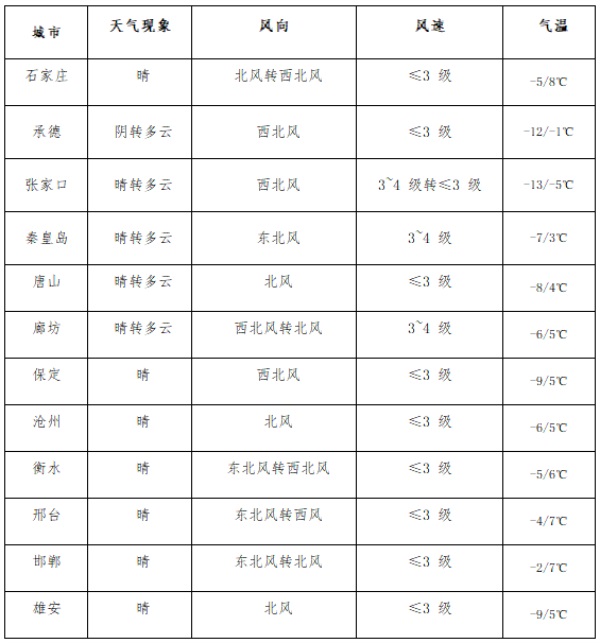 二、未來三天全省主要城市氣象要素預報(河北省氣象臺)