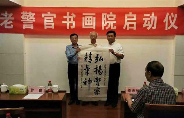 秋日的北京,微風(fēng)拂面、天高氣爽,給人以美的享受。 9月5日上午9:00,北京東城區(qū)廣渠門南濱河路一號院公安部活動(dòng)中心里人頭涌動(dòng),一片熱鬧的景象?!袄暇贂嬙骸背闪x式在此隆重舉行。公安部原副部長羅鋒同志出席儀式為“老警官書畫院”授牌,并為書畫院院長、副院長等領(lǐng)導(dǎo)頒發(fā)聘書。同時(shí)親筆題寫"弘揚(yáng)警察精氣神″七個(gè)大字贈送給老警官書畫院,勉勵(lì)書畫院積極落實(shí)習(xí)近平總書記在十九大報(bào)告中指出的“文化自信是一個(gè)國家、一個(gè)民族發(fā)展中更基本、更深沉、更持久的力量”講話精神,弘揚(yáng)傳統(tǒng)書畫藝術(shù),弘揚(yáng)優(yōu)秀公安文化。