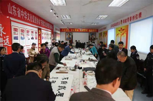 山東省社科聯(lián)原副主席、黨組書(shū)記、山東省中華文化促進(jìn)協(xié)會(huì)主席劉德龍同志在大禮堂為山東東營(yíng)金盾司法學(xué)校部分師生作“傳承齊魯文化”專(zhuān)題講座。從這方土地上的地理景觀到人文風(fēng)骨,從先賢們的學(xué)說(shuō)到現(xiàn)代教育,從齊魯文化到傳統(tǒng)文化,從了解文化到傳承文化,劉德龍副主席講述的非常細(xì)致。他聲如洪鐘、慷慨激昂,學(xué)生們聽(tīng)得津津有味、受益匪淺。整個(gè)講座在一片積極、和諧的氛圍中進(jìn)行,讓我們真切感受到了傳統(tǒng)文化對(duì)學(xué)生的深刻影響。也讓每一位師生都感受到有責(zé)任發(fā)揚(yáng)齊魯文化、傳統(tǒng)文化,增強(qiáng)我們的文化自信。與此同時(shí)進(jìn)行的書(shū)畫(huà)筆會(huì)上,十幾名書(shū)畫(huà)家揮毫潑墨,創(chuàng)作了有關(guān)齊魯文化、傳統(tǒng)文化的書(shū)畫(huà)作品,對(duì)山東東營(yíng)金盾司法學(xué)校校園文化建設(shè)又是一大激勵(lì)。