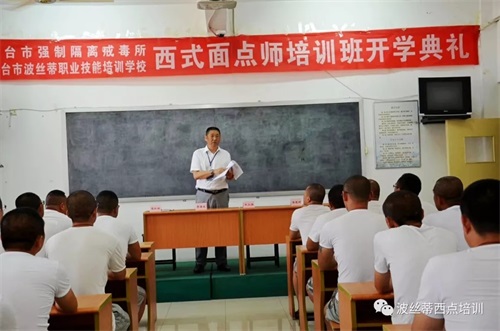 為進(jìn)一步擴(kuò)大煙臺(tái)市強(qiáng)制隔離戒毒所“文化育人”管理新模式的成效,鼓勵(lì)戒毒學(xué)員積極參與習(xí)藝活動(dòng),掌握一定的就業(yè)謀生技能,幫助他們盡快融入社會(huì)。近日,2019年首期煙臺(tái)市強(qiáng)制隔離戒毒所西式面點(diǎn)班在煙臺(tái)波絲蒂學(xué)校開(kāi)班了,此次培訓(xùn)是煙臺(tái)市人力資源和社會(huì)保障局公共就業(yè)和人才服務(wù)中心、煙臺(tái)市強(qiáng)制隔離戒毒所聯(lián)合煙臺(tái)市波絲蒂職業(yè)技能培訓(xùn)學(xué)校共同舉辦,煙臺(tái)市人力資源和社會(huì)保障局公共就業(yè)和人才服務(wù)中心培訓(xùn)科李科長(zhǎng),煙臺(tái)市強(qiáng)制隔離戒毒所劉所長(zhǎng),教育科李科長(zhǎng),波絲蒂西點(diǎn)培訓(xùn)學(xué)校陳校長(zhǎng)共同出席了開(kāi)班儀式。