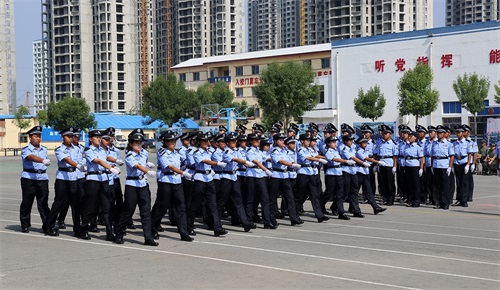 國歌奏響,全場莊嚴而肅穆。經(jīng)過軍訓洗禮的新生,精神飽滿、軍姿威嚴、隊列整齊的樹立于操場,嘹亮的口號響徹校園上空。提前批一區(qū)隊、二區(qū)隊依次進行了隊列表演。他們步伐矯健、士氣昂揚,充分展示了東營金盾司法學校新學子朝氣蓬勃、奮發(fā)向上的精神風貌。