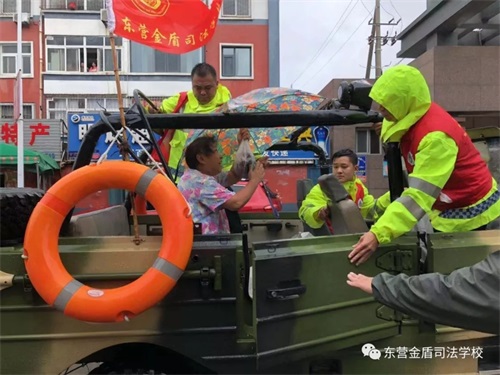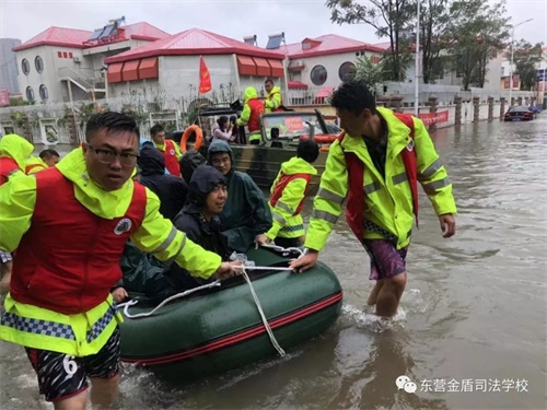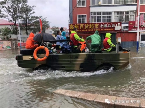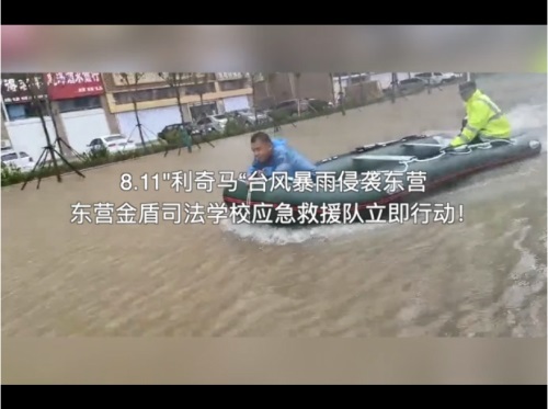 8月11日,在第9號臺風(fēng)“利奇馬”的影響下,東營已經(jīng)歷了長達(dá)一天一夜的暴雨侵襲,部分主干路及居民小區(qū)都被積水浸泡,有居民被困家中,暴雨的肆虐嚴(yán)重威脅了人們的生命和財(cái)產(chǎn)安全。東營金盾司法學(xué)校參與救援。