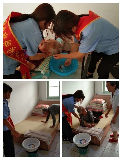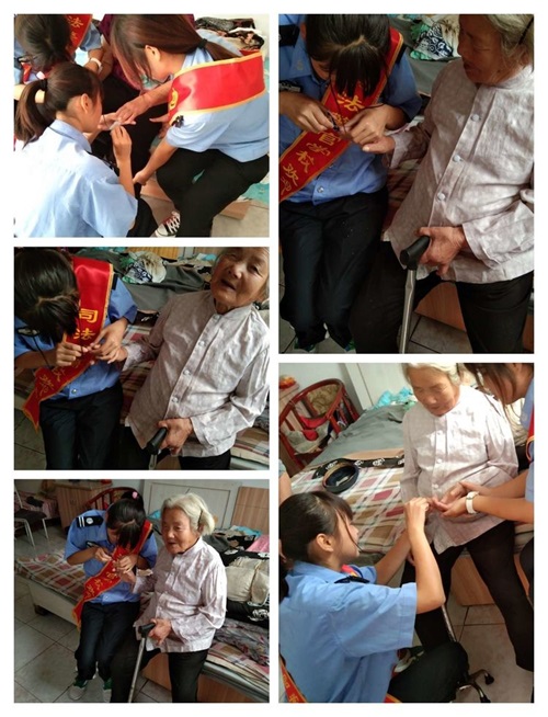 在敬老院中,志愿者們毫不嫌臟。耐心、仔細(xì)地幫助老人們洗腳、洗頭發(fā)、剪指甲。這些都讓同學(xué)們體會到了老一輩的孤獨(dú)、現(xiàn)在大家的幸福和自私。在那里盡同學(xué)們可能地多和老人聊天、談心,竭盡所能使老人感到溫暖。秦皇島山海關(guān)司法警官職業(yè)培訓(xùn)學(xué)校的學(xué)生們還幫助敬老院的職工一起打掃敬老院。雖然都滿頭大汗,但心里很高興,因?yàn)榇蠹倚睦锒加幸还勺院栏?。而這種自豪感不是在學(xué)校里能夠體會到的。