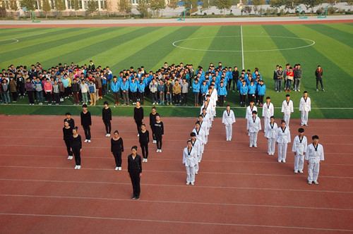 齊魯管理學(xué)院全體同學(xué)積極備戰(zhàn)武術(shù)操比賽