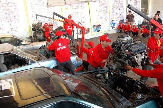 北方汽修學(xué)校發(fā)動機組裝