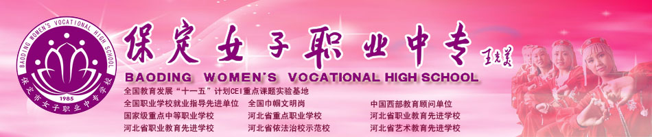 保定市女子職業(yè)中專學(xué)校于1985年建校,是經(jīng)河北省教育廳批準(zhǔn)的國(guó)辦女子職業(yè)中專學(xué)校,國(guó)家級(jí)重點(diǎn)中等職業(yè)學(xué)校,全國(guó)職業(yè)指導(dǎo)工作先進(jìn)學(xué)校。 作為保定市窗口單位,學(xué)校先后接待美國(guó)、加拿大、韓國(guó)、日本等四十多國(guó)家和地區(qū)的代表團(tuán)來(lái)訪。學(xué)校于2003年取得了招收外國(guó)留學(xué)生資格,面向世界開放辦學(xué),與俄羅斯民族藝術(shù)學(xué)院、澳大利亞TAFE學(xué)院達(dá)成了聯(lián)合辦學(xué)意向;與日本米子市商業(yè)高等??茖W(xué)校、新西蘭璜家雷女子高中結(jié)為姊妹學(xué)校;與荷蘭阿爾貝達(dá)學(xué)院簽定聯(lián)合辦學(xué)協(xié)議,互派留學(xué)生。2007年2月,學(xué)校派遣留學(xué)生到荷蘭訪問學(xué)習(xí),2008年10月,第一批荷蘭留學(xué)生來(lái)校訪問交流。2009年5月,..