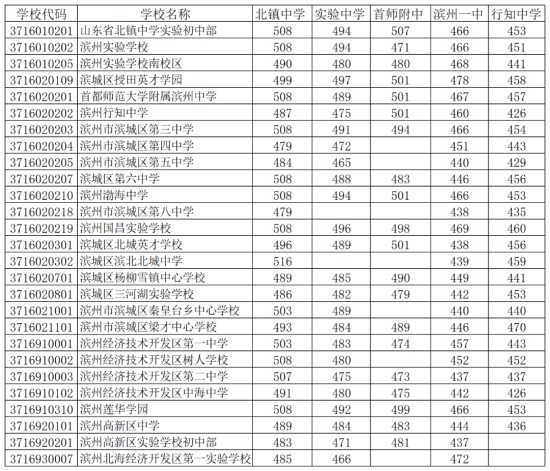 2022年市城區(qū)普通高中學(xué)校 錄取分?jǐn)?shù)線一覽表 內(nèi)容來(lái)源:濱州市教育局