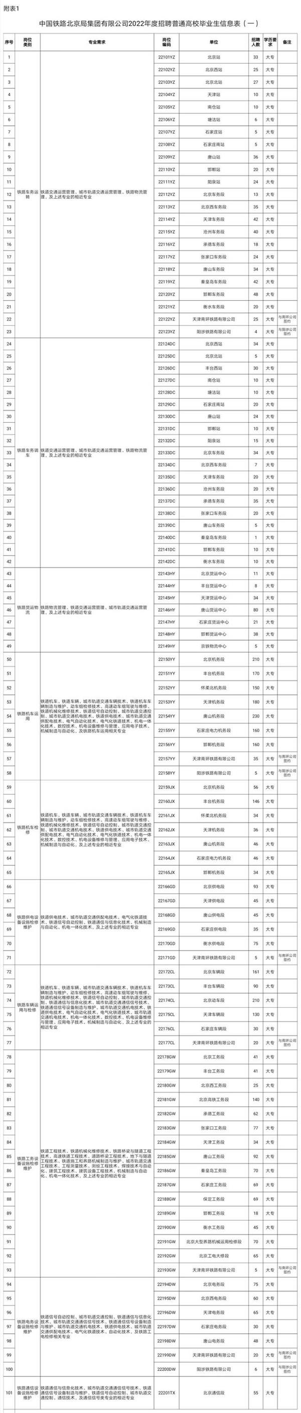 1、中國(guó)鐵路北京局集團(tuán)有限公司擬招聘普通高校大專(高職)學(xué)歷畢業(yè)生,唐山有崗。
